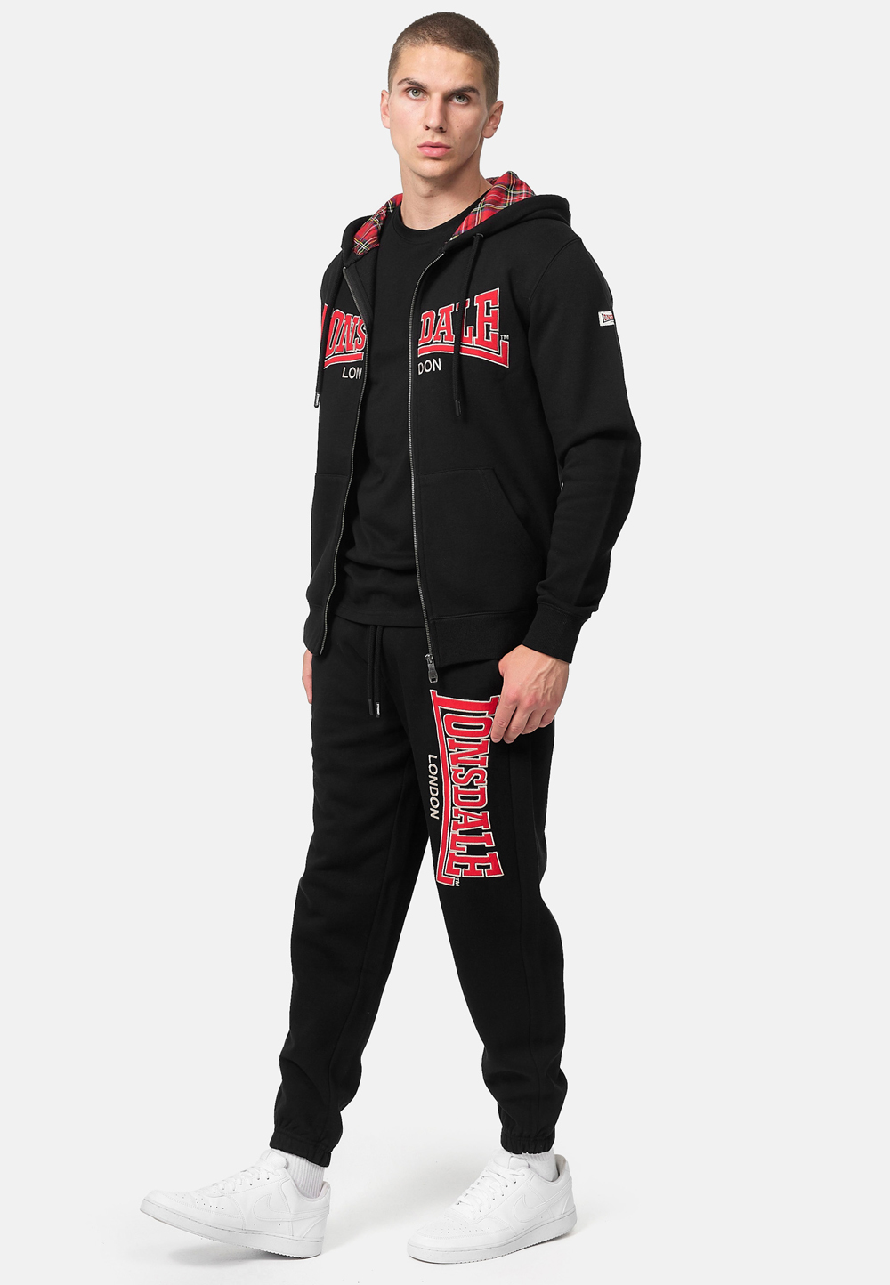 régulière - Description du modèle : Pantalon de survêtement avec application contrastante sur la cuisse. Il y a deux poches coupées sur la couture latérale avant et une poche plaquée avec étiquette Lonsdale à l’arrière. Il y a des poignets élastiques aux hanches et aux poignets des jambes.