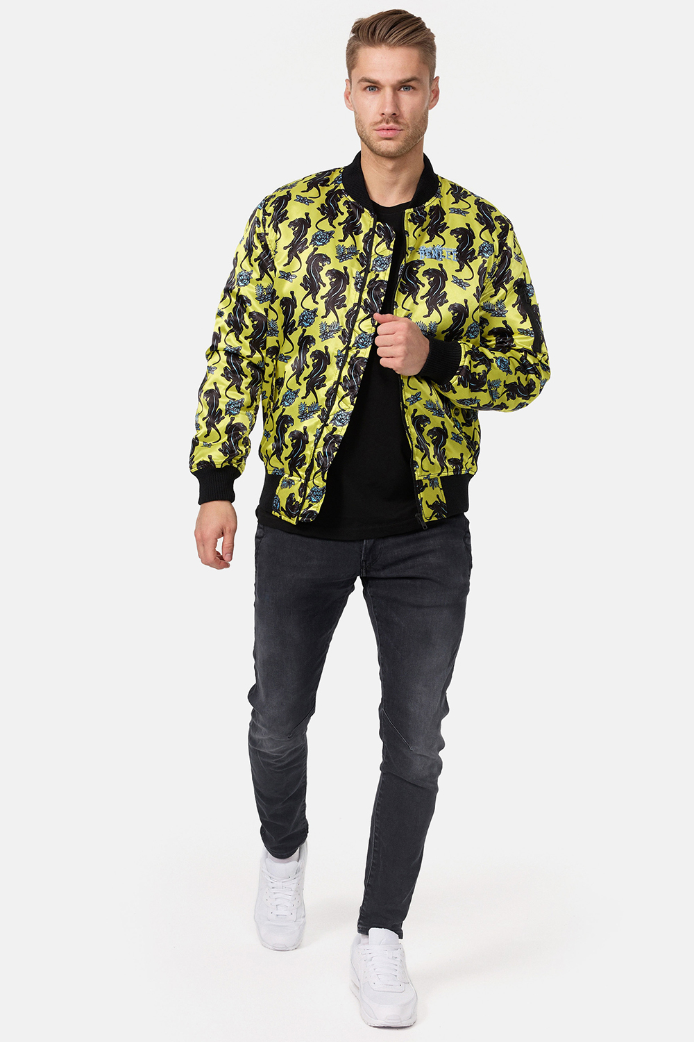 - Description du modèle: Veste bomber légère élégante avec fermeture éclair pleine longueur. L’impression all-over est un véritable accroche-regard. Les poignets élastiques sur les manches et l’ourlet assurent que la veste s’adapte parfaitement à la forme de votre corps. Il y a deux poches sur le devant et à l’intérieur de la veste, qui peuvent être fermées avec un bouton-pression. La poitrine gauche est brodée du logo BENLEE.